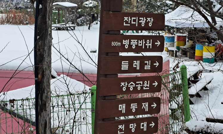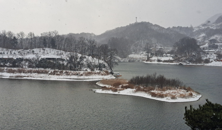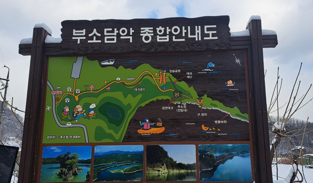 겨울에는 눈이 쌓인 부소담악의 경치가 마치 동화 속 한 장면처럼 아름답습니다. 차가운 공기 속에서 호수의 정적을 느끼며 조용한 산책을 즐길 수 있습니다. 겨울철에는 따뜻한 음료를 마시며 정자에서 경치를 감상하는 것도 좋은 방법입니다.