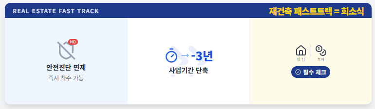 특히 '재건축 패스트트랙'은 안전진단을 통과하지 않아도 재건축 사업 착수를 가능하게 하여, 사업 기간을 획기적으로(약 3년) 단축시키는 제도입니다. 내 집 마련이나 투자를 고려하신다면 반드시 체크해야 할 내용입니다.