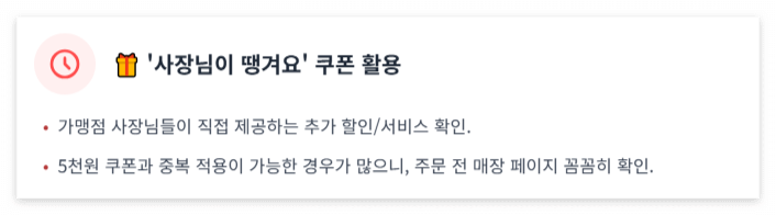 - 🎁 '사장님이 땡겨요' 쿠폰 활용: