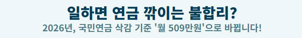 🔥 결론: 이제 월 소득 509만 원 미만의 근로자(대다수 은퇴자)는 **연금 삭감 걱정 없이** 소득 활동을 지속할 수 있습니다. 삭감 딜레마의 가장 확실한 해법입니다.