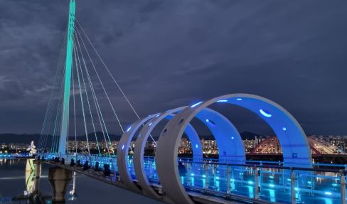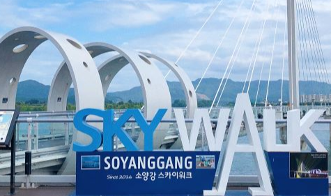 소양강 위에 설치된 투명 유리 바닥을 걸으며 짜릿한 스릴과 아름다운 강변 경치를 즐길 수 있습니다.