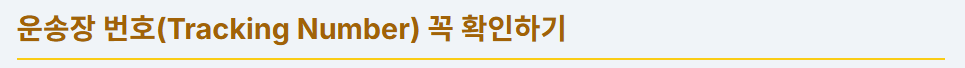 - 운송장 번호(Tracking Number) 꼭 확인하기: