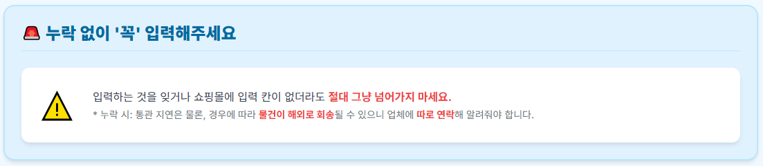- 이때도 내 **개인통관고유부호**는 업체에 꼭 알려줘야 합니다.