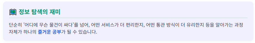 - 정보 탐색의 재미: 단순히 '어디에 무슨 물건이 싸다'를 넘어, 어떤 서비스가 더 편리한지, 어떤 통관 방식이 더 유리한지 등을 알아가는 과정 자체가 하나의 즐거운 공부가 될 수 있습니다.