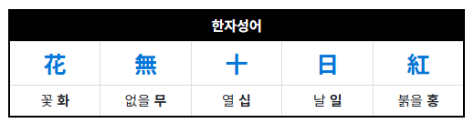 화무십일홍이란 '열흘 동안 붉게 피어 있는 꽃은 없다'는 뜻입니다.