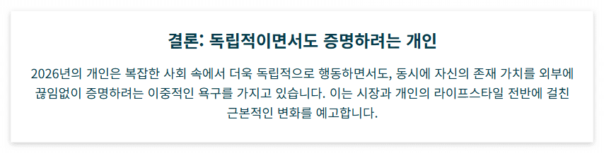 2026년 키워드들은 극심한 양극화와 개인의 고립된 탐색이라는 두 축을 중심으로 2025년의 경향을 더욱 심화시키고 있습니다.