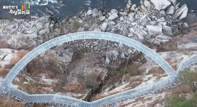 한탄강의 비경을 가장 가까이서 느낄 수 있는 **잔도**는 철원 여행의 꽃입니다. 스릴 넘치는 다리를 건너며 가을 한탄강의 절경을 눈에 담아보세요.