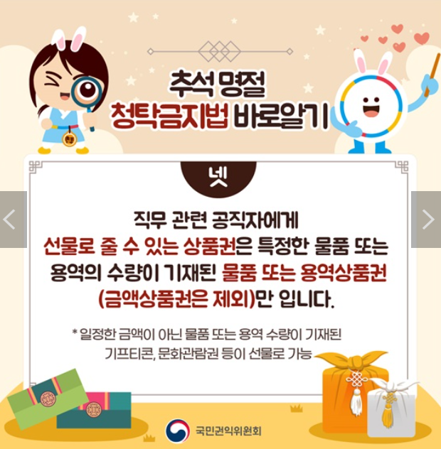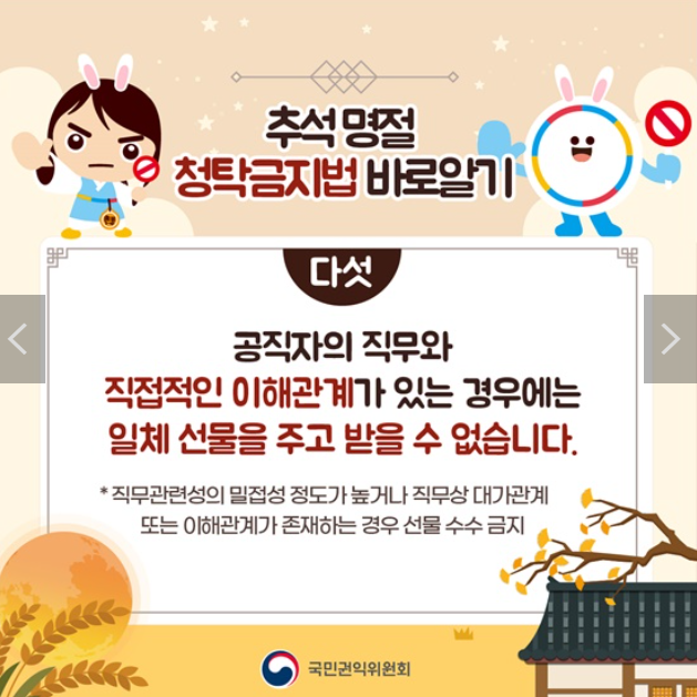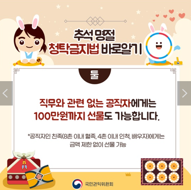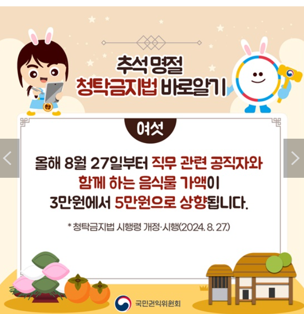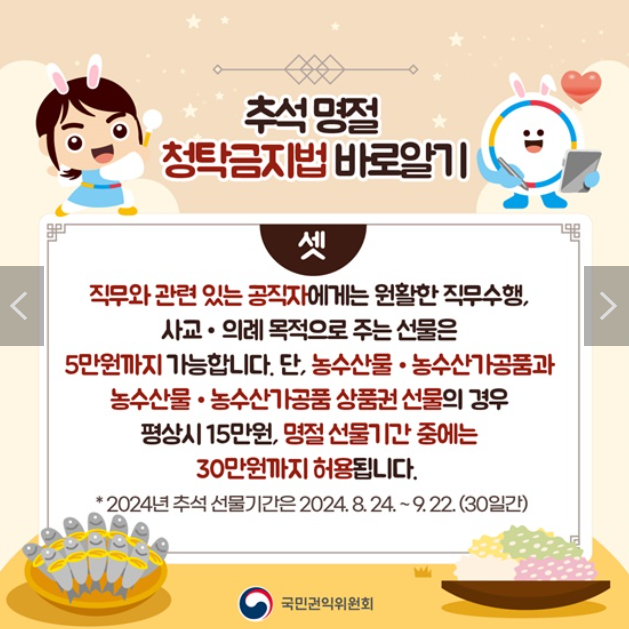 2024년 추석부터 시행되는 청탁금지법의 개정 내용은 시대에 맞춘 현실화된 조처이길 바랍니다.