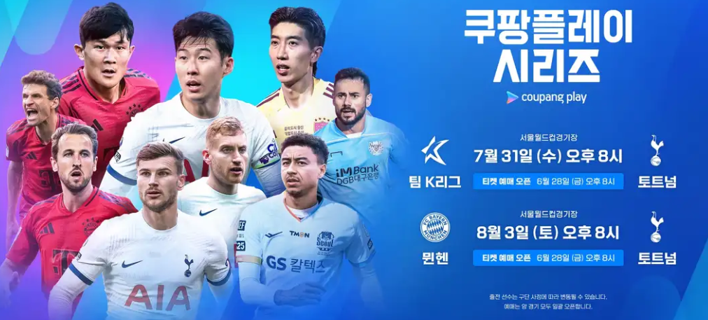 2024 쿠팡플레이 시리즈에서 토트넘 홋스퍼와 바이에른 뮌헨이 맞붙고, 팀 K리그가 이들과 대결을 펼칩니다. 이번 포스트에서는 경기 일정, 티켓팅 방법, 중계 시청 방법, 팬 서비스, 그리고 양 팀의 선수 및 감독 명단에 대해 자세히 알아보겠습니다.