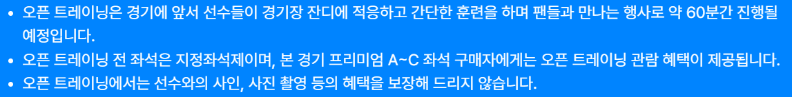 - 사인회: 경기 후 선수들과의 사인회가 예정되어 있습니다.