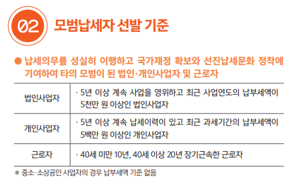 모범납세자 선정 기준