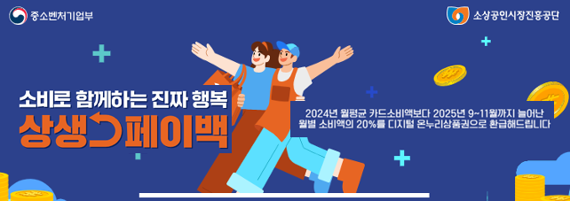상생페이백은 2024년 월평균 카드 사용액보다 2025년 9월~11월에 더 많이 사용한 금액의 20%를 디지털 온누리상품권으로 돌려받는 지원 사업입니다.