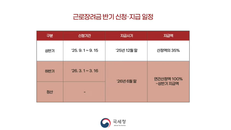 2025년 9월 근로장려금 반기신청, 언제부터인가요?