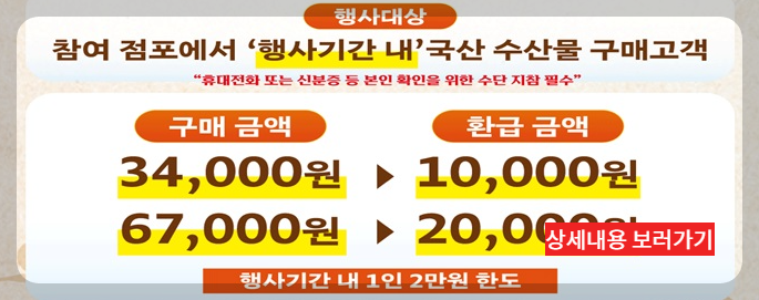 2025년 수산물 할인행사 온누리상품권 환급 행사는 전통시장에서 국산 수산물을 구매한 소비자들에게 구매금액의 최대 30%를 1인당 2만 원 한도에서 온누리상품권으로 환급해 주는 행사입니다. 이 기회를 통해 여러분은 맛있는 국산 수산물을 즐기면서 동시에 경제적 혜택을 누릴 수 있습니다. 이제부터 행사에 대한 자세한 내용을 소개하겠습니다.
