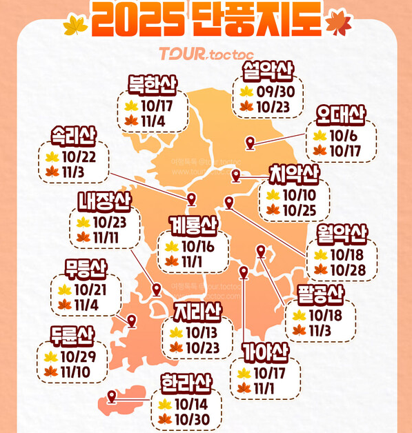 - 2025년 예상 단풍 절정 시기: 10월 마지막 주 ~ 11월 둘째 주
