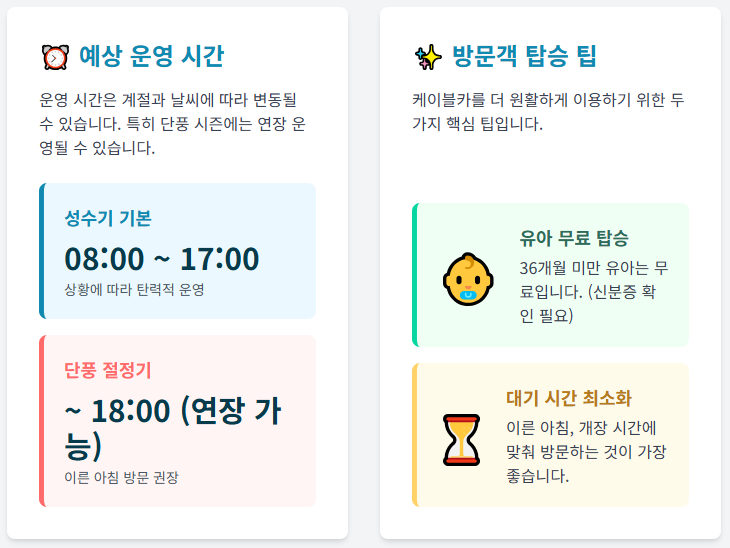 ✅ 케이블카 이용 시 꼭 알아야 할 꿀팁!