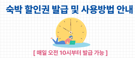 할인권 사용 방법은 간단합니다. 먼저, 해당 기간 동안 예약을 진행한 후, 할인권을 발급받아 체크인 시 제시하면 됩니다. 할인권은 선착순으로 발급되므로, 빠른 예약이 중요합니다.
