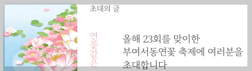 2025 부여서동연꽃축제는 천만송이 연꽃이 선사하는 아름다움과 백제의 역사, 그리고 다채로운 프로그램이 어우러져 오감을 만족시키는 특별한 경험을 제공할 것입니다. 사랑하는 가족, 친구, 연인과 함께 궁남지를 거닐며 연꽃의 향기에 취하고, 환상적인 야경 속에서 잊지 못할 여름밤의 추억을 만들어 보세요. 부여서동연꽃축제에서 여러분의 아름다운 사랑과 추억이 연꽃처럼 활짝 피어나기를 기대합니다.