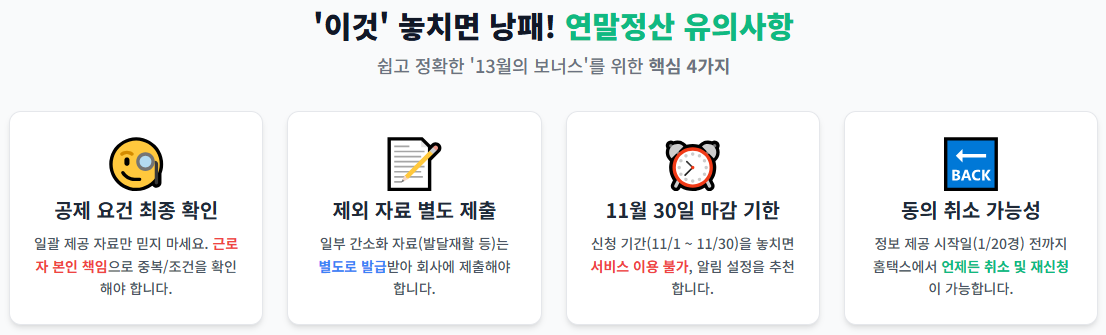 "13월의 보너스" 놓칠까 조마조마? 2025 연말정산 간소화 일괄제공, 11월 30일 마감 전 필수 체크!