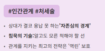 - ✅ 관계의 지혜: 상대가 민감하게 반응하는 주제를 기억하고 침범하지 않기