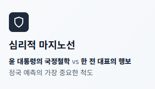 윤석열 대통령의 국정 철학과 한동훈 전 대표의 정치적 행보가 충돌하는 지점, 그 속에 숨겨진 심리적 마지노선을 분석하는 것은 향후 정국을 예측하는 가장 중요한 척도가 됩니다.