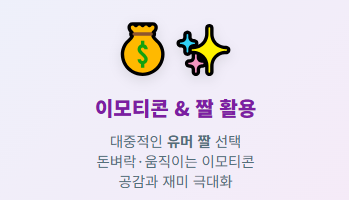 글로만 전달되는 메시지보다 시각적인 이미지를 함께 활용하면 웃음과 재미를 더욱 효과적으로 전달할 수 있습니다. 5060세대에게 친숙하면서도 유쾌한 이미지를 활용해 보세요.