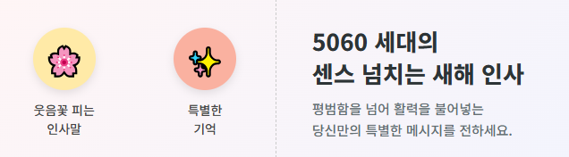 2026년 새해, 5060세대 여러분의 센스 넘치는 인사말로 주변에 웃음꽃을 피우고 활력을 불어넣으시길 바랍니다. 평범함을 넘어 특별함을 선사하는 여러분의 메시지는 분명 오래도록 기억될 것입니다. 다른 유형의 새해 인사말이나 더욱 풍성한 정보가 궁금하시다면 아래 링크를 참고해주세요!