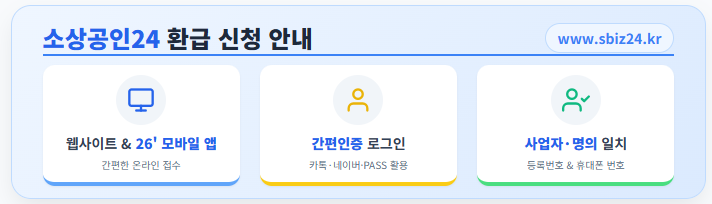 모든 환급 신청은 소상공인24(www.sbiz24.kr) 웹사이트에서 이루어집니다. 2026년부터는 모바일 앱을 통한 신청도 더욱 간편해졌습니다.