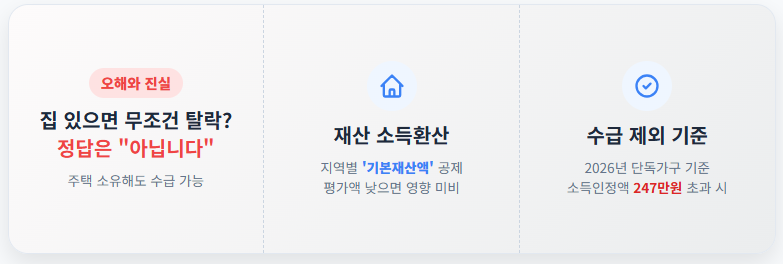 👉 2026년 기초연금 수급자격 완전 분석 보러 가기Q3: 살고 있는 집이 있으면 무조건 탈락? (오해와 진실)
