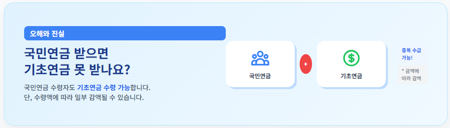 - ✅ 진실: 아닙니다. 국민연금을 받는다고 기초연금을 전혀 못 받는 것은 아닙니다.