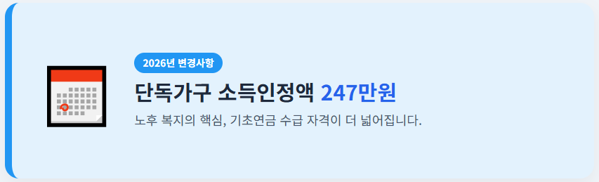 - Q4: 2026년에 소득인정액 247만원 기준이 상향 조정되었다는데, 제가 해당될까요?