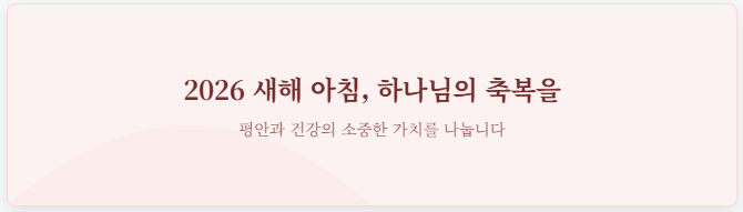"새해에는 주님의 예비하신 만복이 당신의 발걸음마다 머물기를 소망합니다. 고난 중에도 평안을 잃지 않는 은혜로운 2026년 되시길 기원합니다."