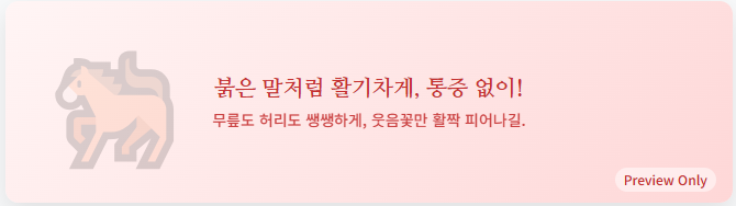 "붉은 말의 해, 그 힘찬 기운을 받아 무릎도 허리도 쌩쌩하게! 아픈 곳 없이 웃음꽃만 피어나는 2026년 되시기를 간절히 소망합니다."