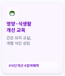 - 내용: 어르신들의 건강한 식생활을 위한 영양 교육, 요리 교실, 식단 상담 등을 운영하고 참여 시 인센티브 제공.