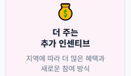 - 현금 대신 해당 지자체에서 사용 가능한 지역화폐(예: 김포페이, 성남사랑상품권 등)나 전통시장 상품권 등으로 추가 인센티브를 지급하여 지역 경제 활성화도 도모합니다.