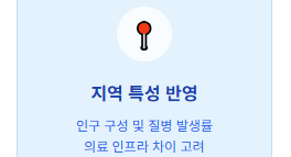 - 지역 특성과 건강 수요 반영: 각 지역의 인구 구성(노인 인구 비율 등), 주요 질병 발생률, 의료 인프라 등에 따라 중점적으로 관리하는 건강 문제가 다릅니다.