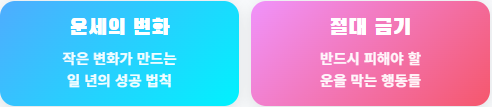 🚫 집안 수리 주의: 기운이 바뀌는 날이므로 큰 공사나 수리는 피하는 것이 풍수적으로 좋습니다.
