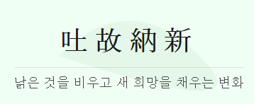 • 토고납신(吐故納新): 낡은 것은 뱉고 새것을 받아들이는 희망찬 변화