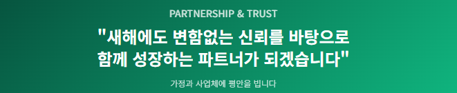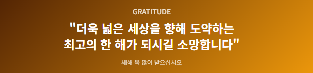 • "변함없는 신뢰와 협력에 깊이 감사드립니다. 새해에도 귀사와의 소중한 인연을 바탕으로 함께 성장하는 파트너가 되겠습니다. 가정과 사업체에 행복과 평안이 가득하시길 바랍니다."