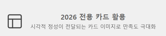 또한, 문구만 전하기 아쉬울 때 함께 보낼 수 있는 2026년 전용 카드 이미지를 활용해 보세요. 정성이 시각적으로 전달되어 만족도가 매우 높습니다.