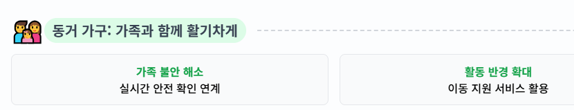 - 자녀와 함께 거주하는 노인가구: 자녀가 바빠서 돌봄에 어려움을 겪을 때, 특정 시간대의 돌봄 서비스나 프로그램 연계를 통해 가족의 간병 부담을 덜어줄 수 있습니다.
