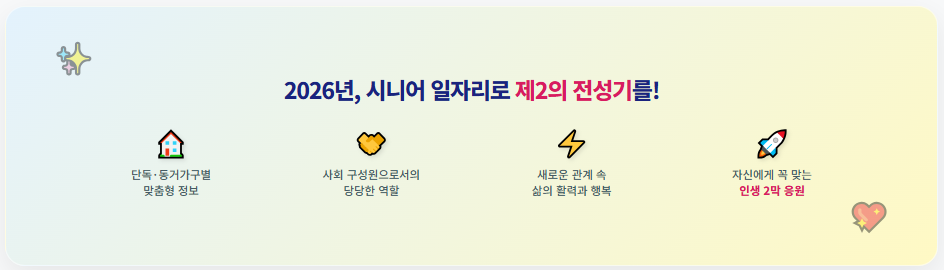 2026년, 당신의 제2 인생 시작! 노인 일자리, 단독/동거 가구 맞춤형으로 찾아드립니다