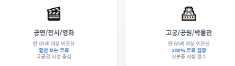 - 동거가구 어르신: 자녀 및 손자녀와 함께 즐길 수 있는 문화 활동 할인 혜택을 찾아 가족 관계 증진에도 활용.
