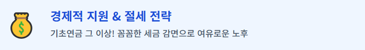 - 가구별 고려사항: 단독/동거가구 모두 노후 자금 운용 시 유리한 조건을 활용 가능.