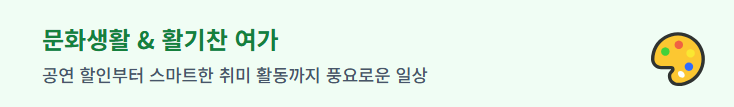 - 내용: 국공립 공연장 및 일부 사립 공연/전시, 영화관람 시 할인 또는 무료 입장