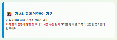 - 가구별 고려사항: 단독/동거가구 모두 생활비 절감 효과.