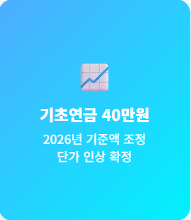 💰 기초연금: 2026년 선정 기준액 조정과 함께 단가가 40만 원으로 인상되어 소득 하위 70% 어르신들의 생활 안정을 돕습니다.