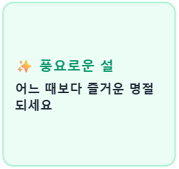 명절이 다가오면 사돈댁이나 오랜 지인, 동창들에게 어떤 인사를 건네야 할지 고민이 깊어집니다. 너무 가볍지 않으면서도 진심이 느껴지는 문구, 그리고 명절 주차나 세뱃돈 같은 실속 정보까지 한데 모아 정리했습니다. 원하시는 문구 아래의 버튼을 누르면 바로 복사되니 편리하게 사용하세요.