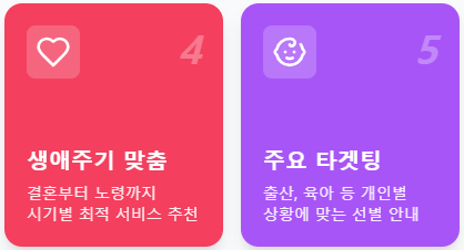 - ✅ 생애주기별 맞춤형: 결혼, 출산, 육아, 노령 등 시기별 안내