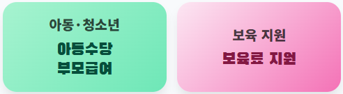 | 아동·청소년 | 아동수당, 부모급여, 보육료 지원 |